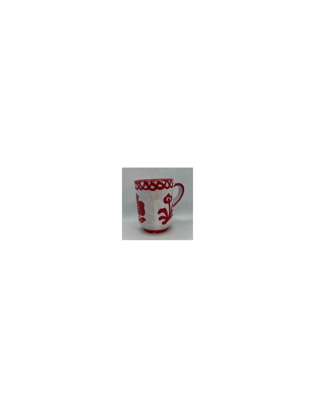 Vaso con asa hecho y pintado mano en cerámica con motivos florales y de tradición granadina.