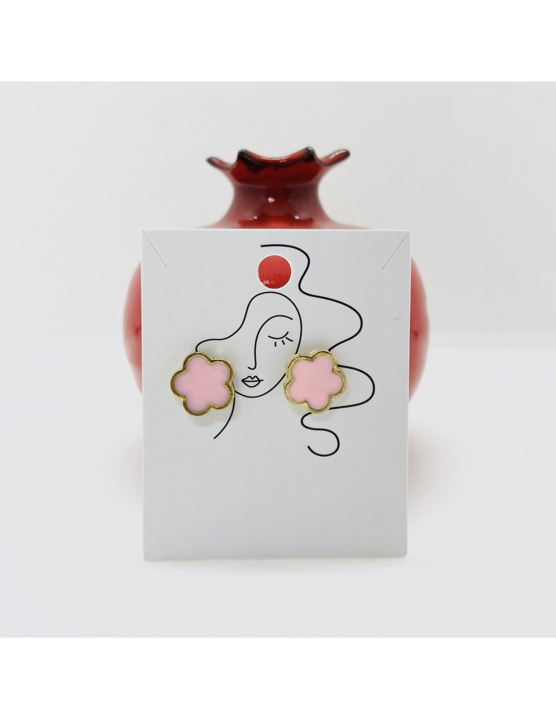 Estos elegantes pendientes dorados de acero, elaborados por artesanos granadinos, presentan un diseño de flores de nácar inspirado en la Alhambra, que combina tradición y modernidad.
