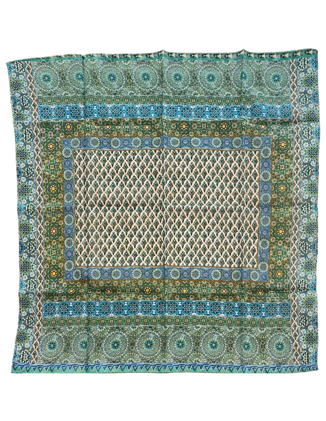 Pañuelo 100% algodón con estampado geométrico inspirado en los mosaicos de la Alhambra. Ligero, suave y versátil, ideal como regalo con historia.