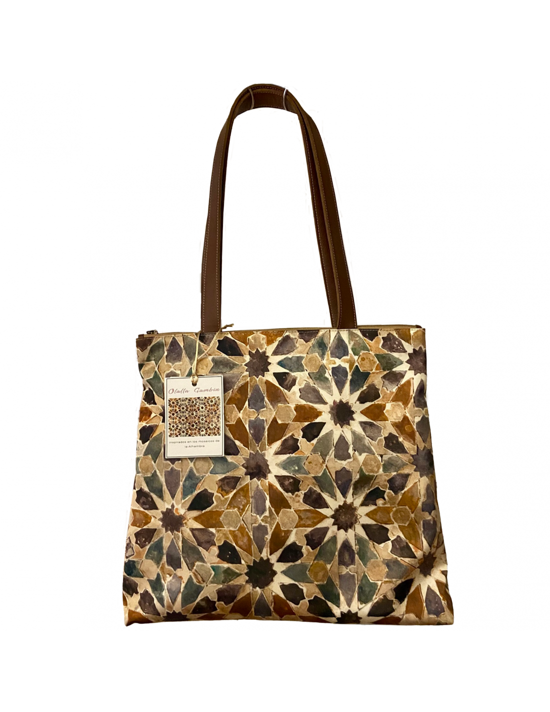 Bolso de piel y seda. Tipo tote. Con cremallera y bolsillo interno. Colección arte: Mosaico Rojo