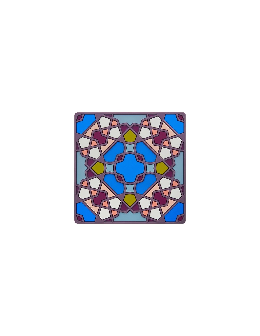 Silicone coaster/trivet with designs inspired by the Alhambra, Granada. Made from high quality waterproof silicone that can withstand 200 degrees Celsius. Wash by hand with luke-warm soapy water.