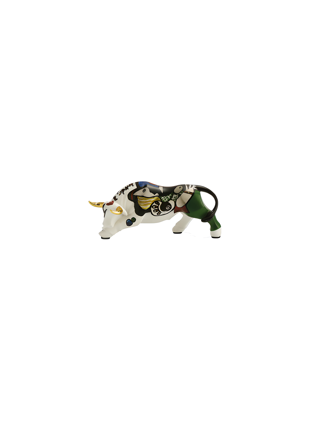 Mini Altamira inspired bull figurine with metallic horns and decal - White N. 2 - NADAL