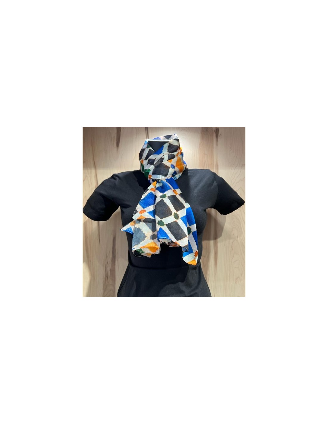 The design of the foulard is inspired by the Mosaics that can be found in the Alhambra, Granada. Their bright and vibrant colours reflect the rich culture of the city.