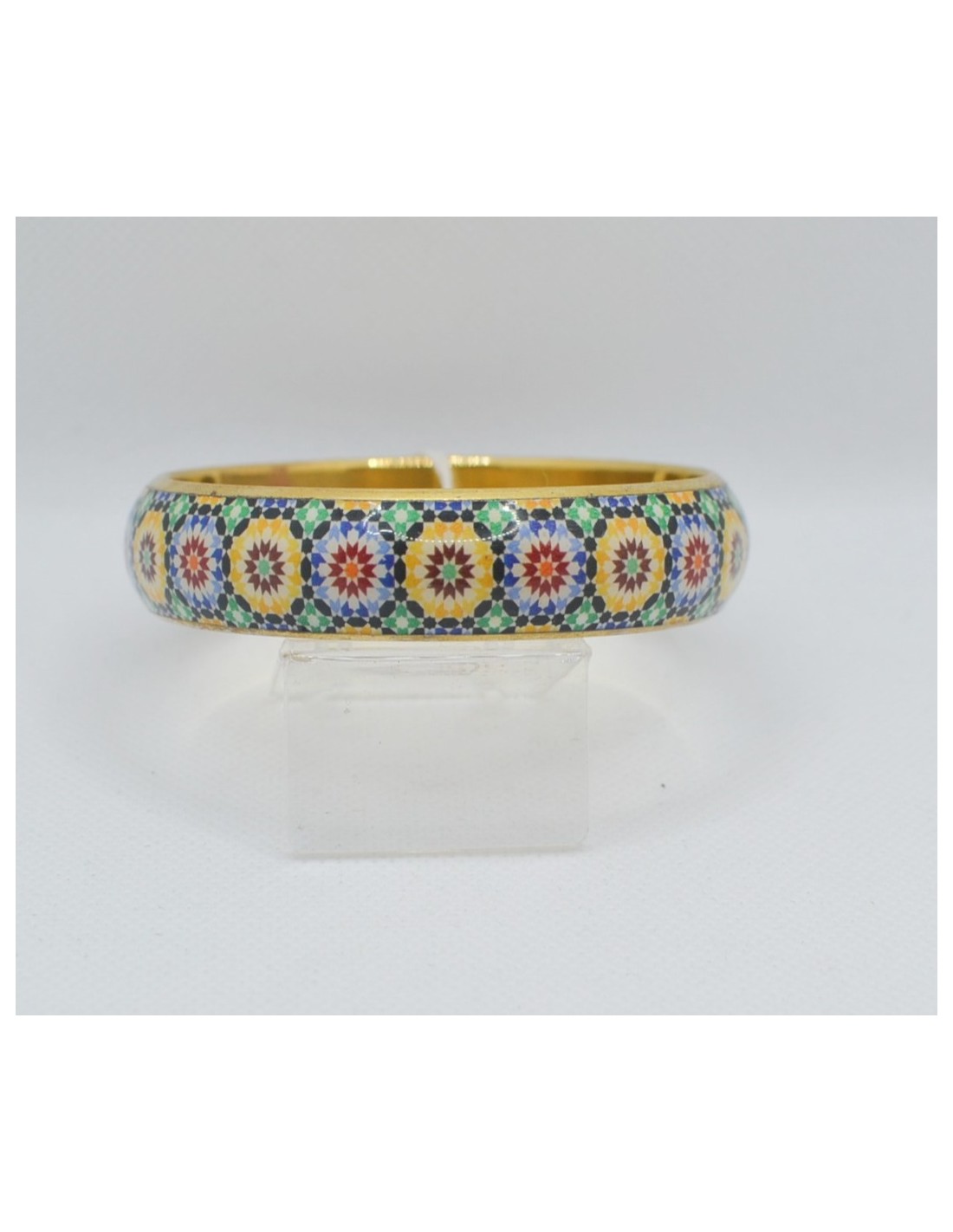 Bangle made from high quality Zamak, stainless steel and brass metal. For those who love the classic Islamic geometrical designs, this bangle is inspired by the classic art that adorns the Monuments found throughout Granada and the Alhambra.