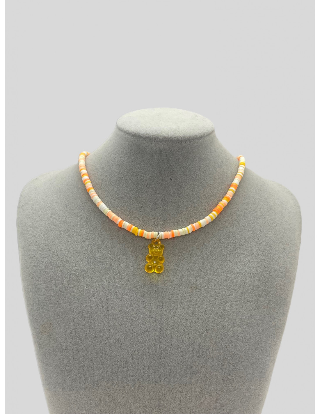 Beaded necklace with gummy bear charm, inspired by the toys found during the excavation of The Alhambra.
