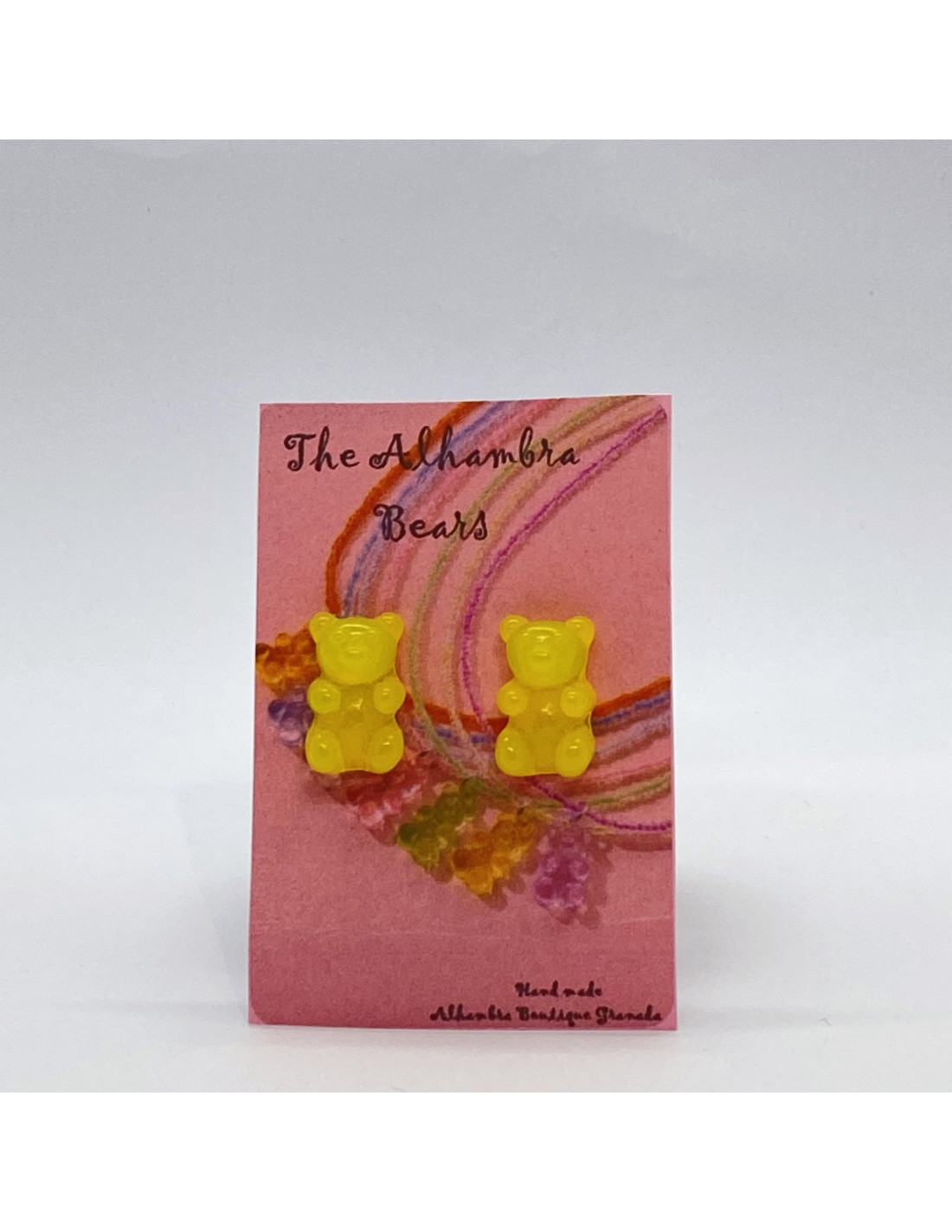 Dangle earrings with gummy bear charm, inspired by the toys found during the excavation of The Alhambra.