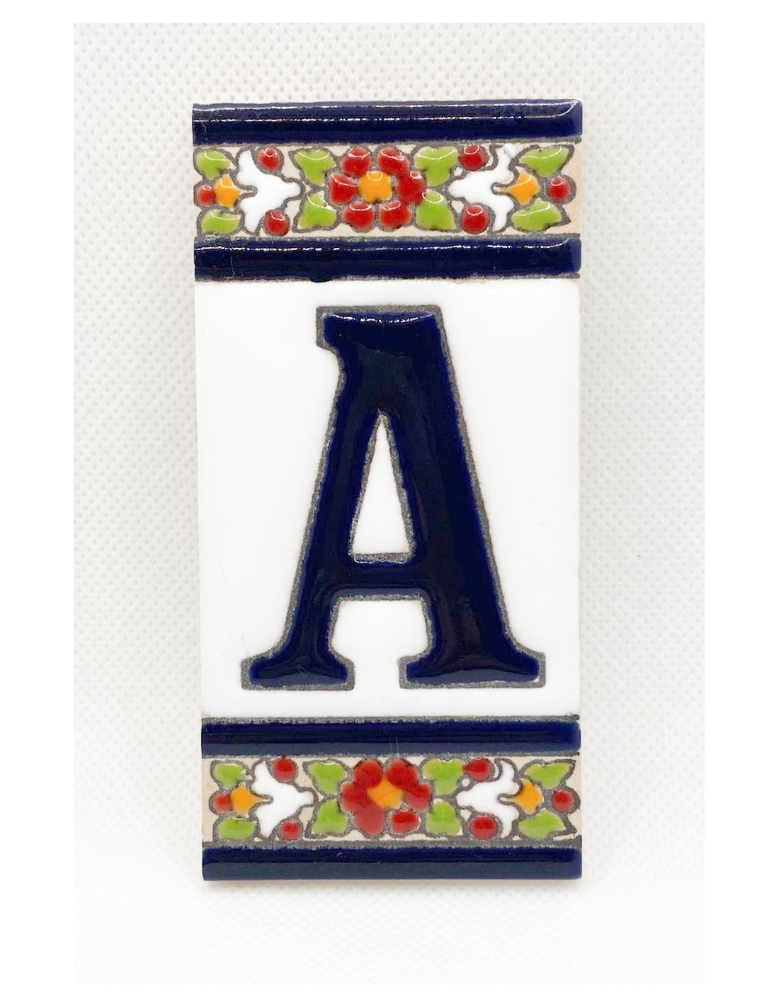 Ceramic letter designed by hand A-Z. Features an Andalusian inspired design.