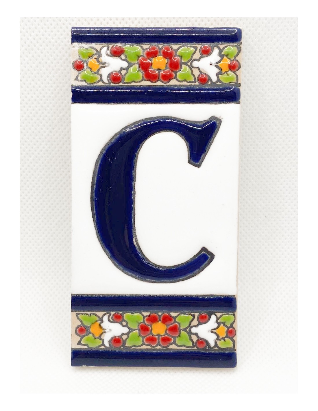Ceramic letter designed by hand A-Z. Features an Andalusian inspired design.