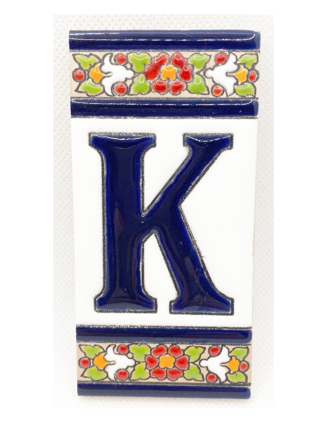 Ceramic letter designed by hand A-Z. Features an Andalusian inspired design.