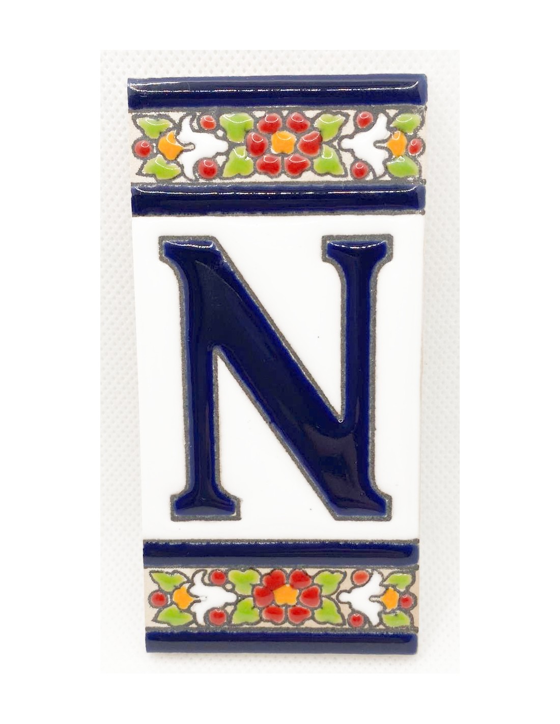 Ceramic letter designed by hand A-Z. Features an Andalusian inspired design.