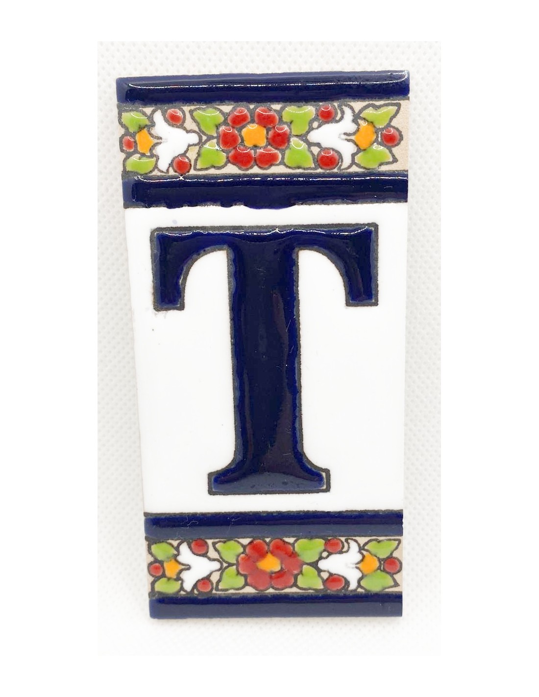 Ceramic letter designed by hand A-Z. Features an Andalusian inspired design.