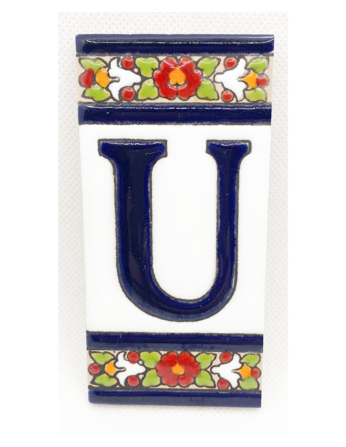 Ceramic letter designed by hand A-Z. Features an Andalusian inspired design.