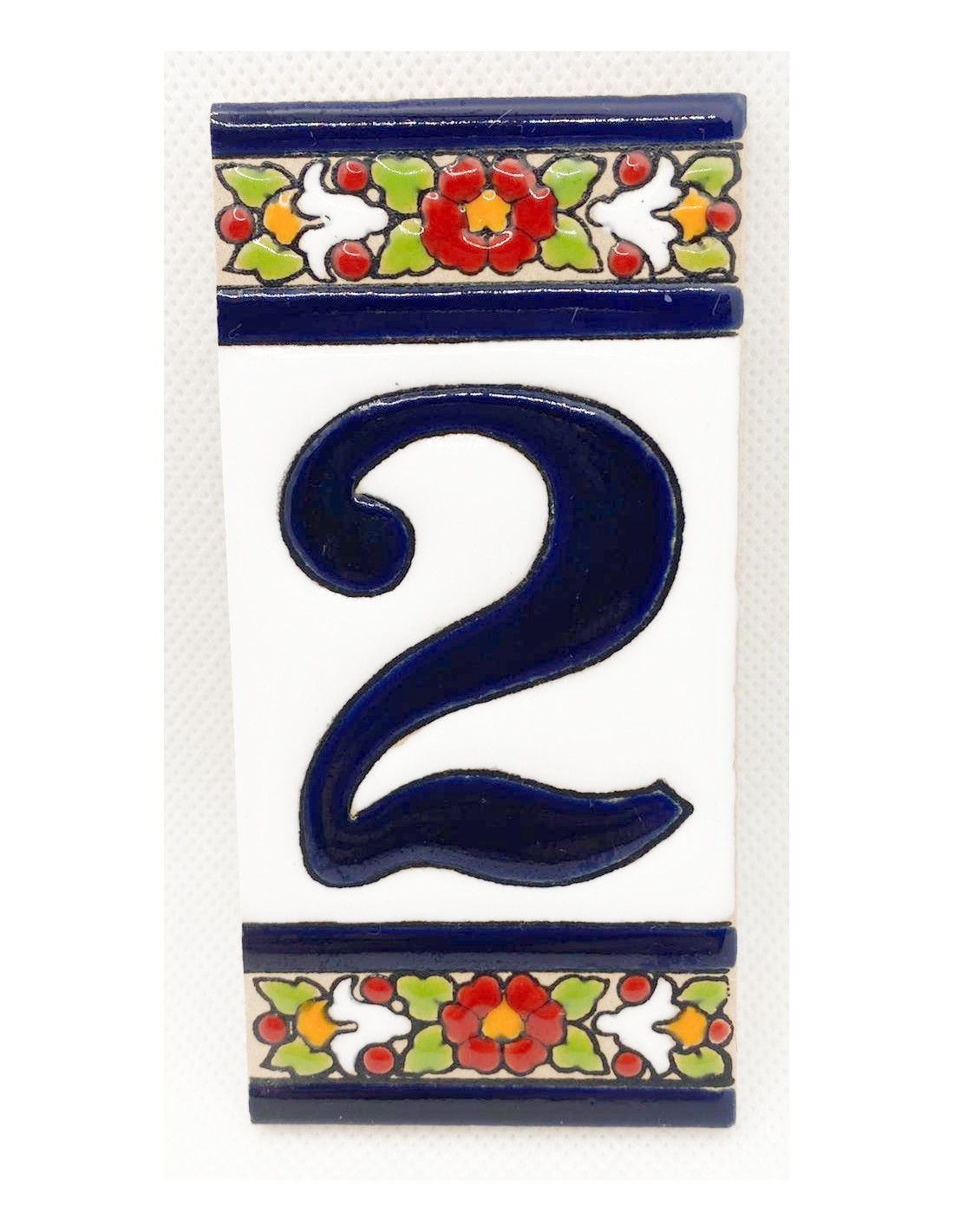Ceramic number designed by hand 0-9. Features an Andalusian inspired design.