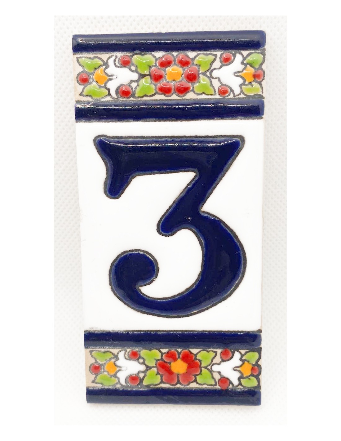 Ceramic number designed by hand 0-9. Features an Andalusian inspired design.