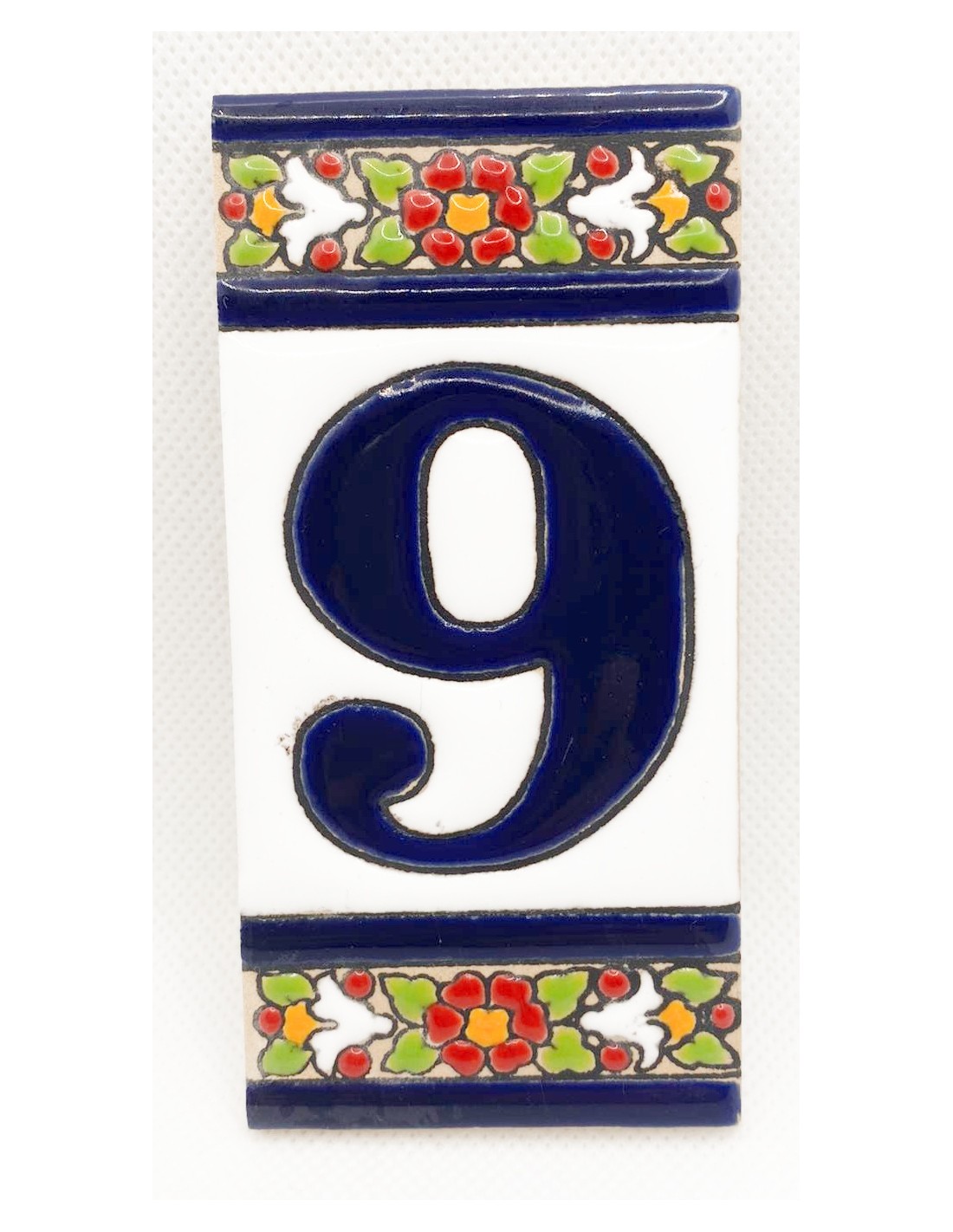 Ceramic number designed by hand 0-9. Features an Andalusian inspired design.