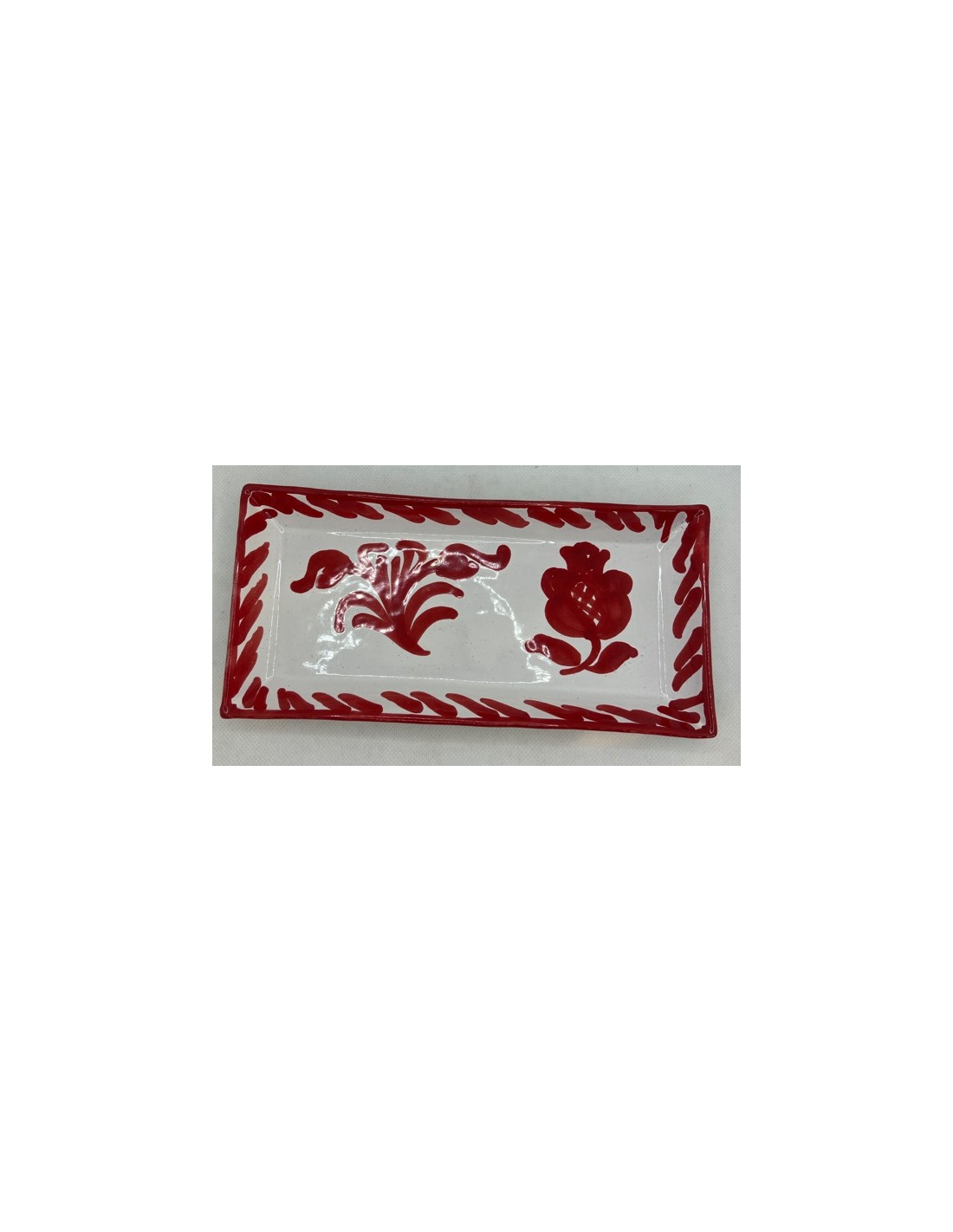 10.5X22.5cm Ceramic Tray - Red Fajalauza design