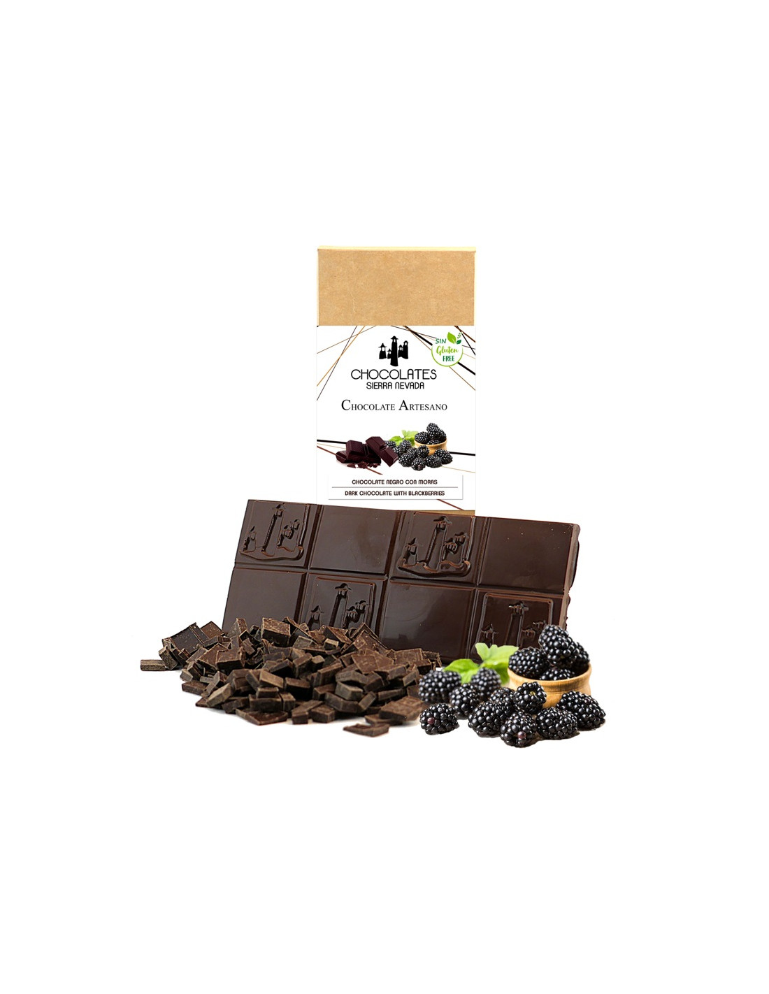 INGREDIENTS: Cacao 70.3%, Cacao paste, sugar, cocoa butter, emulsifier, soy lecithin, natural vanilla aroma. Glucose syrup, blackberries 20%, food product colouring (carrot, hibiscus, elderberries concéntrate) concentrated BlackBerry juice 6%, acidity correctors: E330, E450, E341, colourant