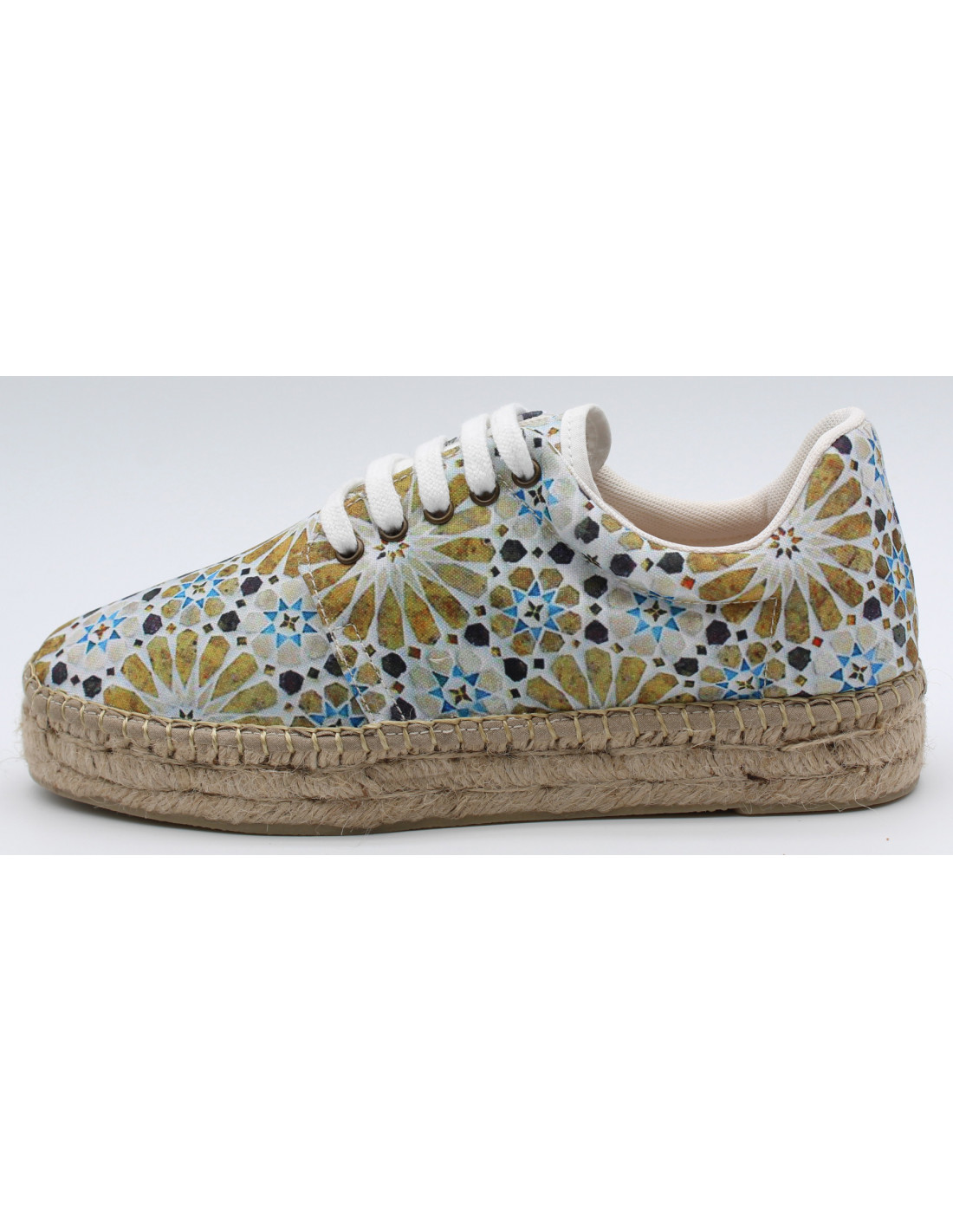 Zapatilla tipo deportiva con cordones con suela de yute y goma. Artesanía hecha en España. Hechas a mano.