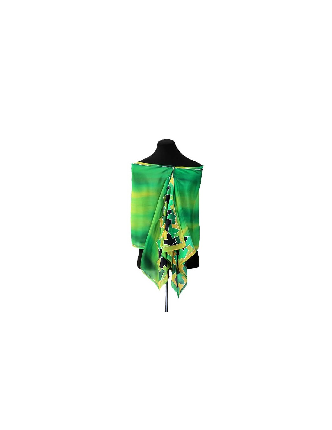 Arab Mosaic Silk Scarf Cuarto Dorado - The Golden Room design. With green and gold tones. Hand-painted and hemmed.