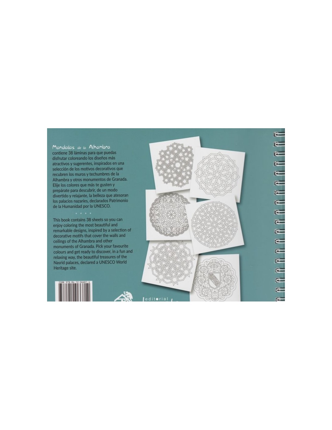 "Mandalas of The Alhambra" contains 28 different prints to enjoy colouring in, featuring the most attractive and unique desines inspired by a selection of designs found in the walls of the Alhambra and throughout the city of Granada.