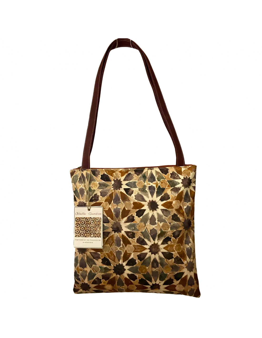 Leather and Silk Bag with two handles - Mosaico Rojo design
