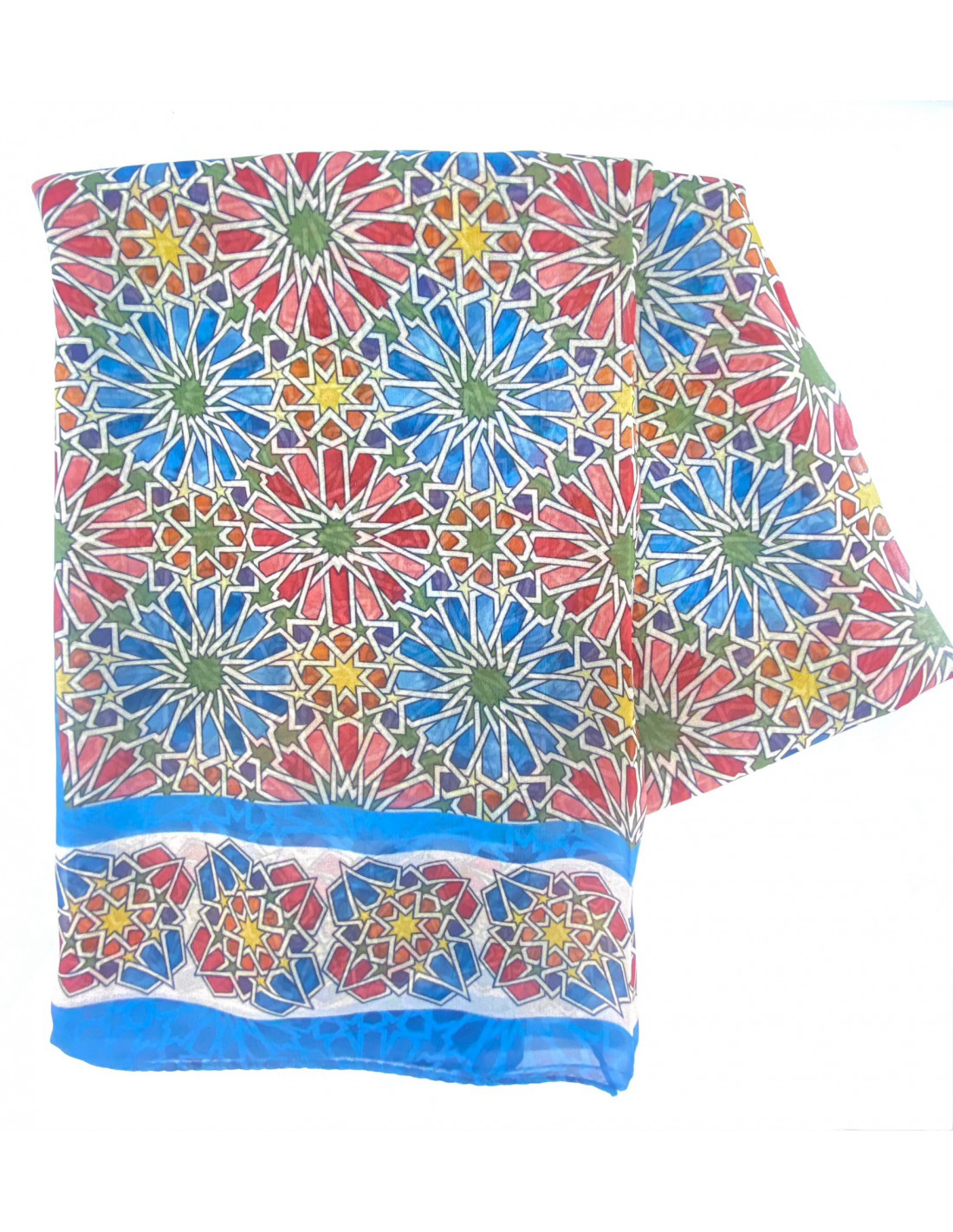 Add a classic yet elegant touch to your attire with our stunning viscose fabric pashminas, inspired by the exquisite Nazarí Mosaics of the Alhambra. This accessory, designed in Spain, combines the sophisticated, versatile yet modern art found in Granada.