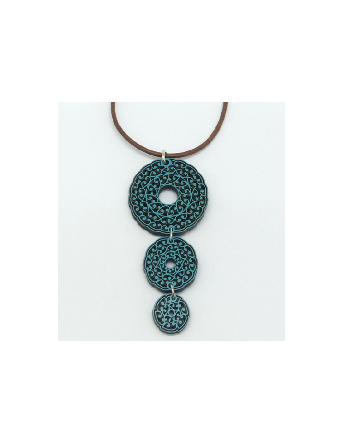 Wooden pendant made from high quality Galician alder wood. Leather necklace string length is 42cm.