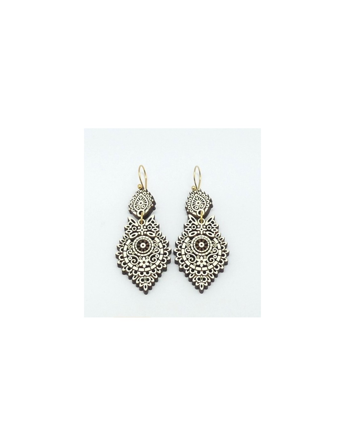 Wooden macramé design dangle hook earrings - The Lusos Collection
