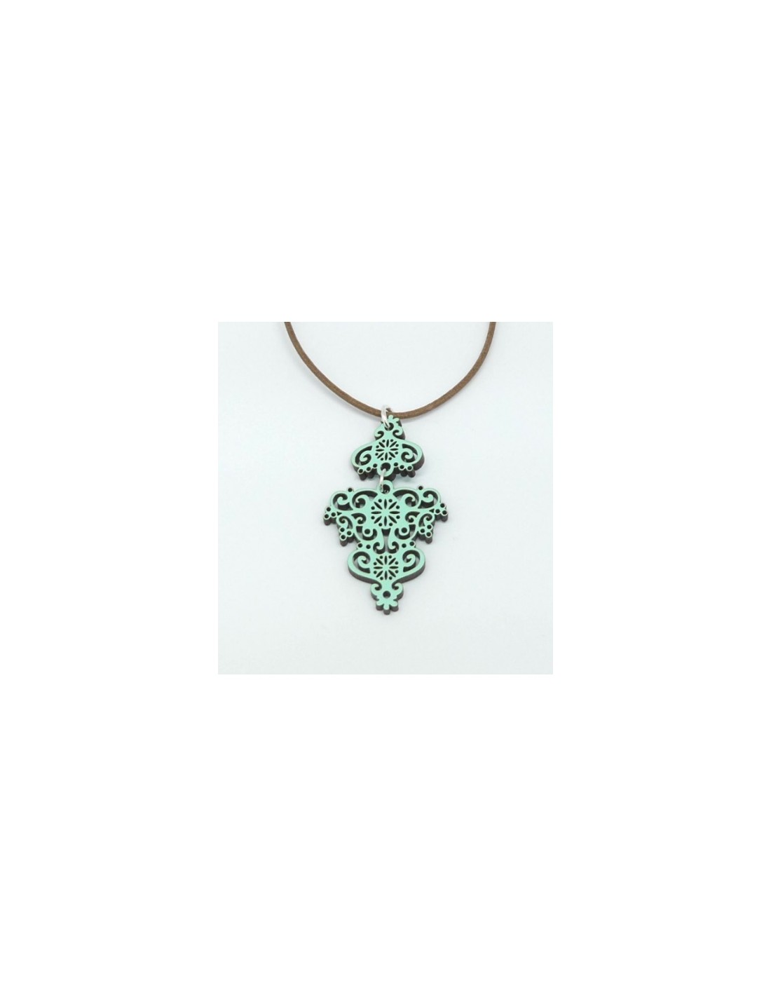 Wooden symmetrical design pendant necklace - The Traditional Collection