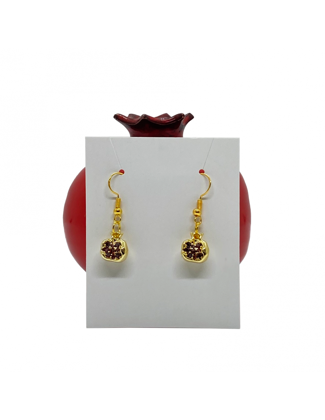 These sophisticated golden earrings, crafted in silver and decorated with Swarovski crystals, feature enchanting pomegranates, a symbol of wealth and fertility, fusing elegance and tradition.