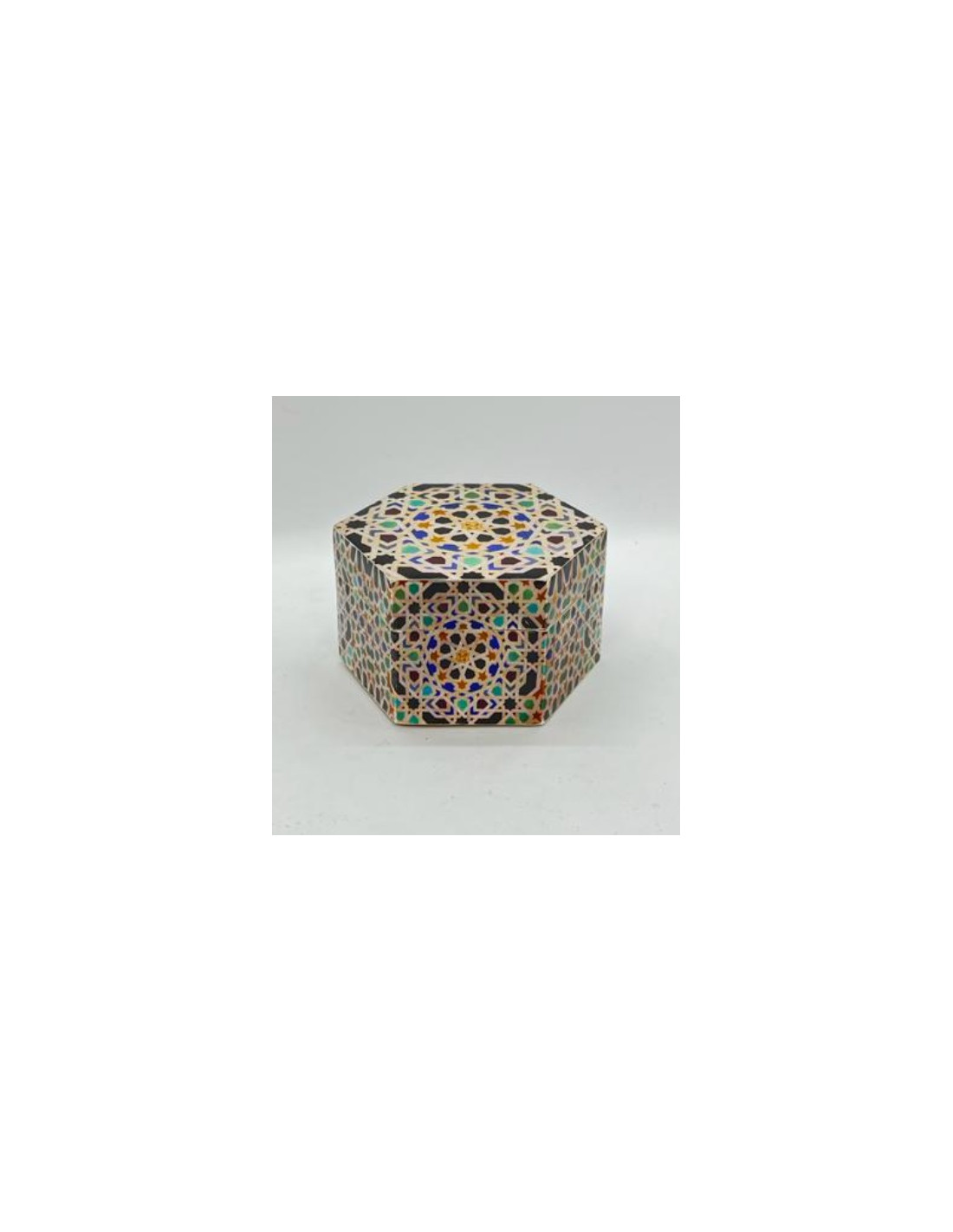 Small hexagonal Taracea design wooden box - The Mosaics of the Alhambra