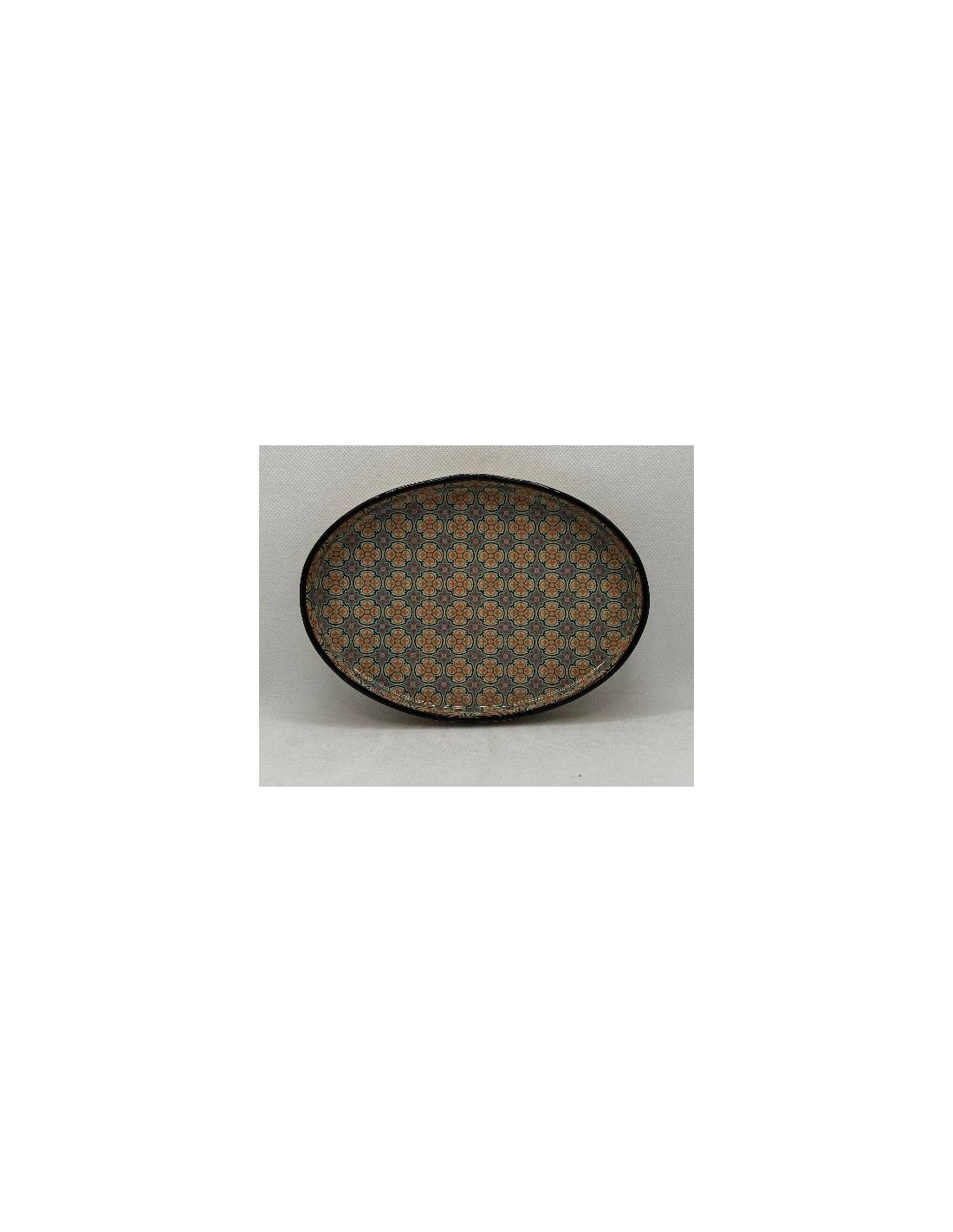 Oval wooden tray. Designed using the Taracea method and inspired by the Mosaics of the Alhambra of Granada. 15.5x23cm.