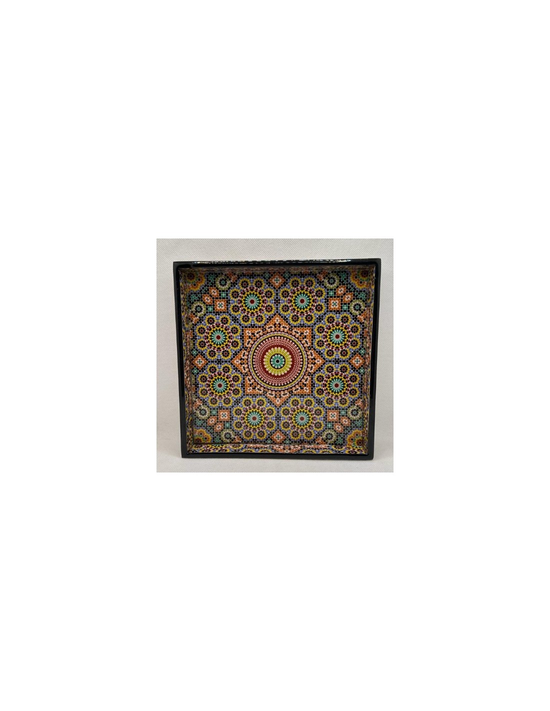 Square wooden tray. Designed using the Taracea method and inspired by the Mosaics of the Alhambra of Granada. 20x20cm.