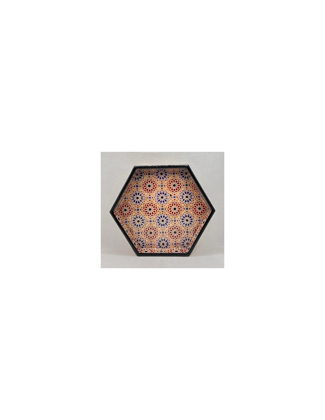 Hexagonal Taracea design wooden tray T.2 - The Mosaics of the Alhambra