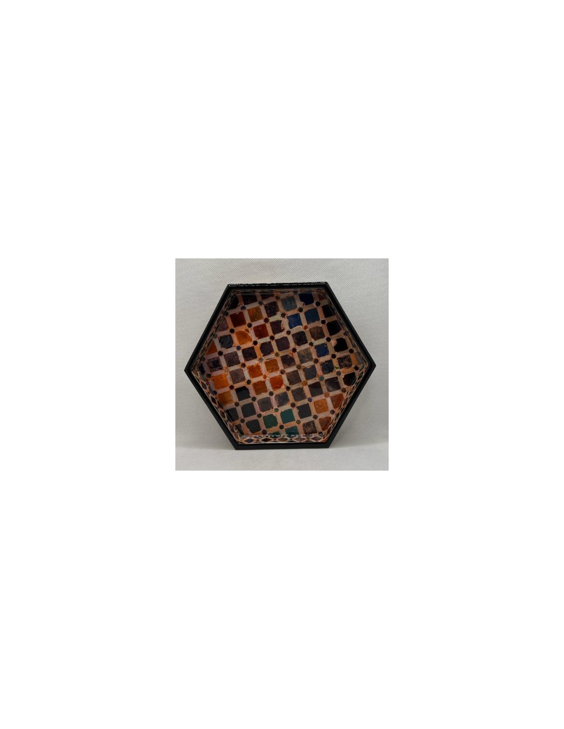 Hexagonal Taracea design wooden tray T.3 - The Mosaics of the Alhambra