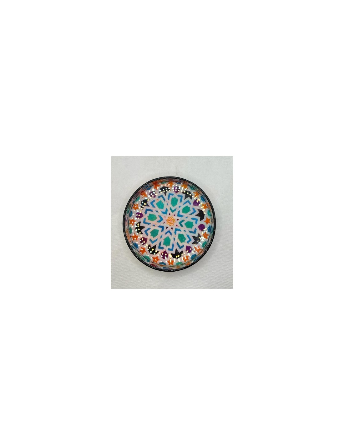 Circular wooden tray. Designed using the Taracea method and inspired by the Mosaics of the Alhambra of Granada. 16cm.