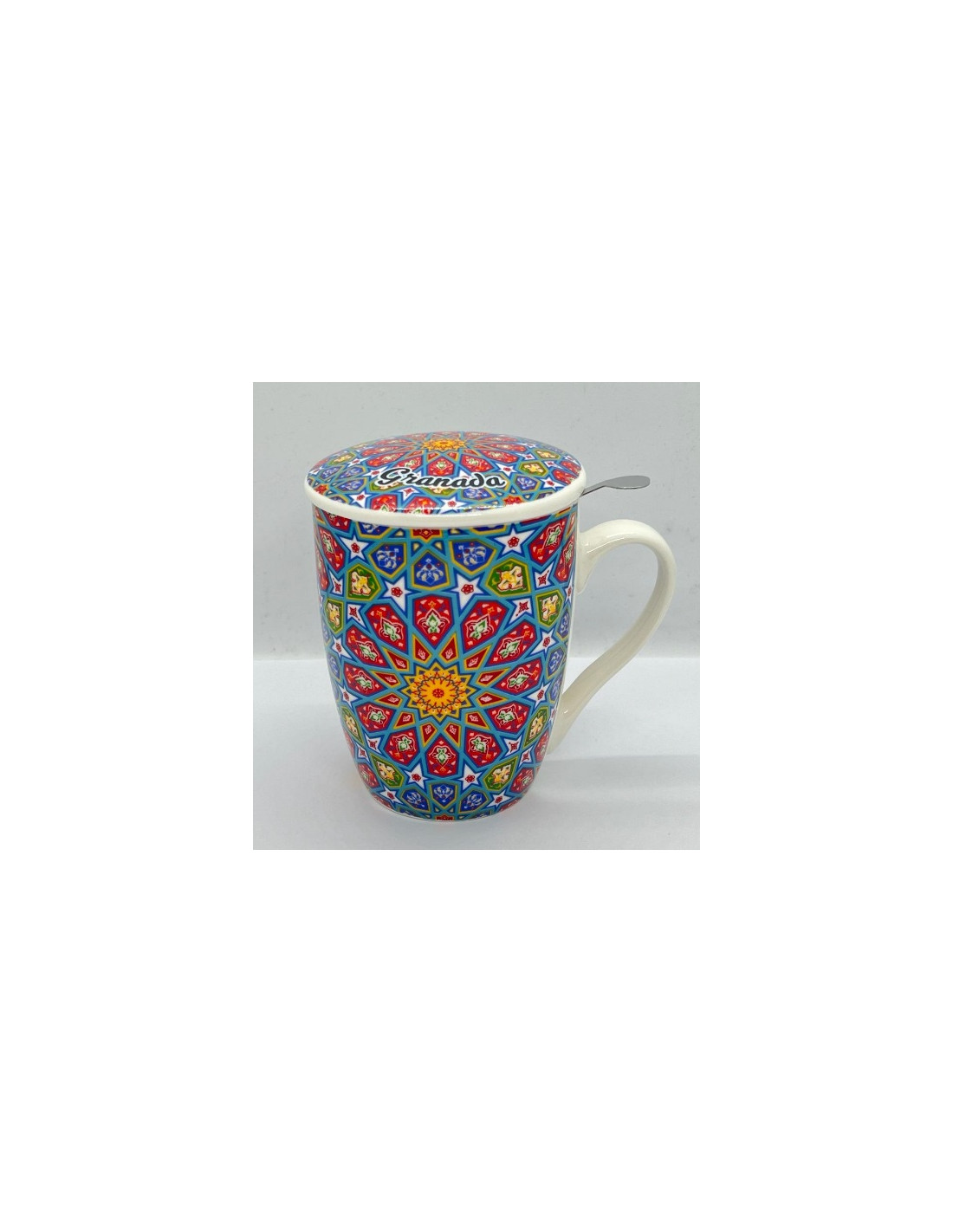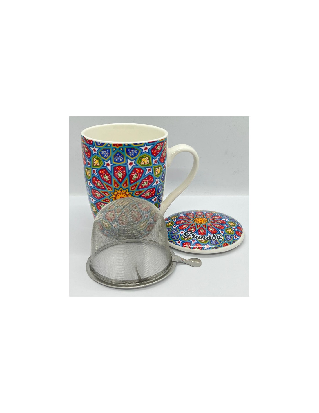 Porcelain tea cup with filter and lid - Mosaics of the Alhambra design