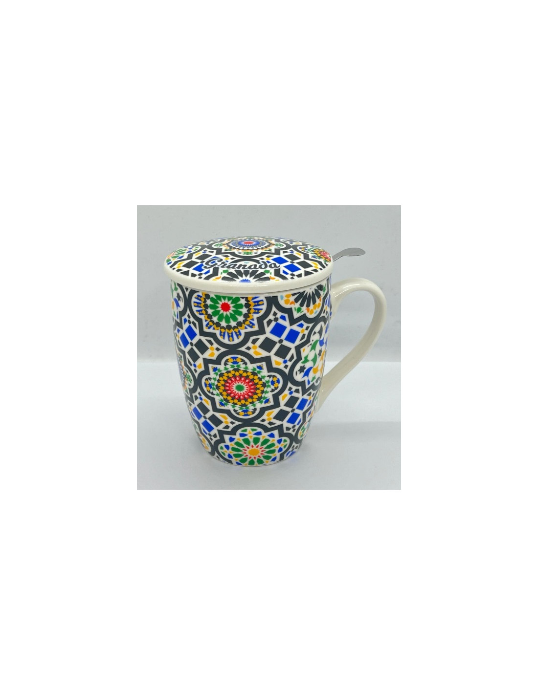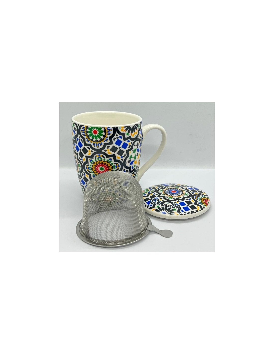 Porcelain tea cup with filter and lid - Mosaics of the Alhambra design