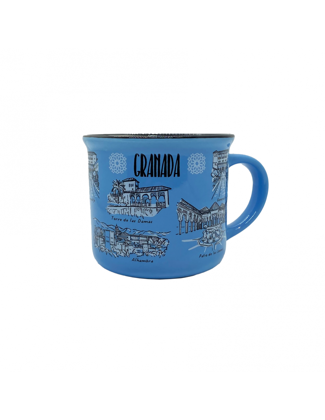 Take home a piece of Granada with this beautiful ceramic mug. Featuring charming illustrations of the city’s most iconic landmarks — such as the Alhambra, the Lions' Courtyard (Patio de los Leones), and the Tower of the Ladies (Torre de las Damas) — it’s the perfect souvenir for lovers of Granada.