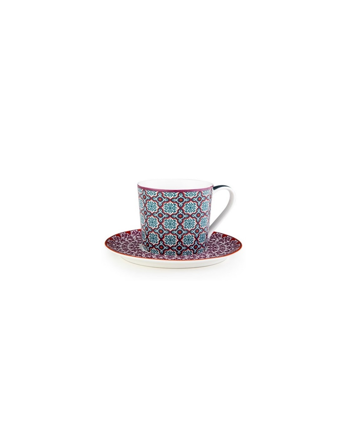 Cup and saucer set made from fine spanish Porcelain. 210ml. Designs inspired by the Alhambra of Granada. Dishwasher and Microwave safe.