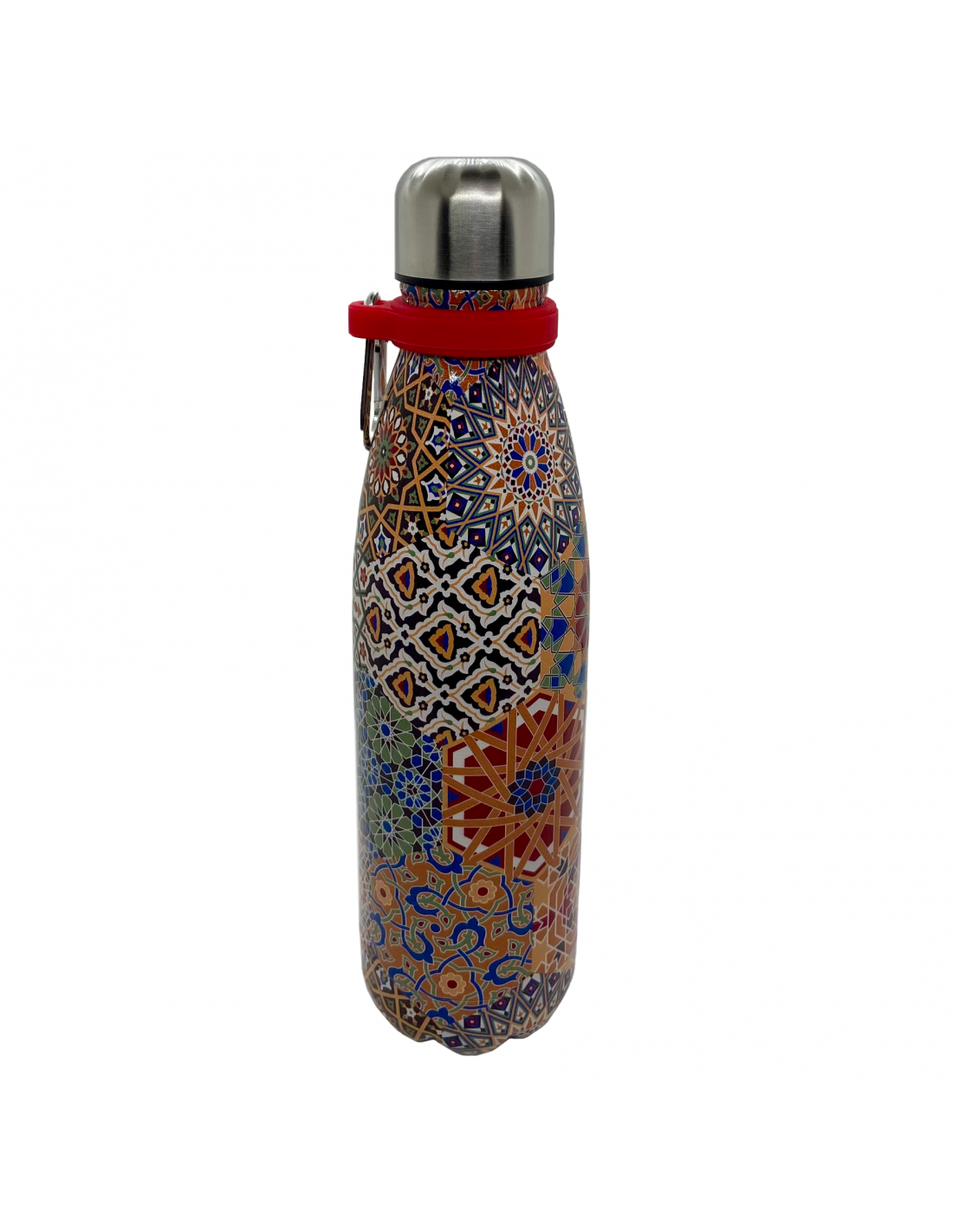 Botella térmica de acero inoxidable para frío y calor, ligera y resistente con cierre hermético. Diseños arabescos y mosaicos de la Alhambra.